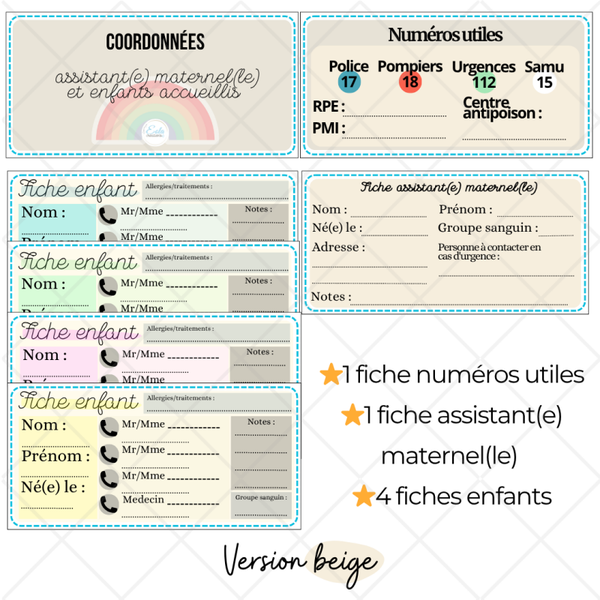 - 1 fiche coordonnées assistant(e) maternel(le)