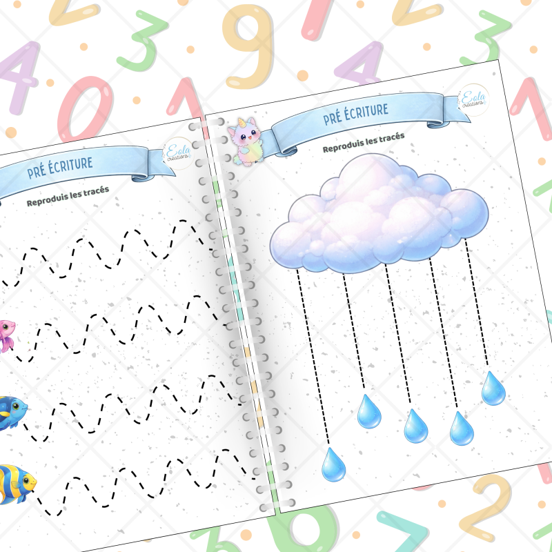 À travers des exercices ludiques, votre enfant apprendra à dénombrer, comparer les quantités, associer les chiffres aux quantités, repérer des suites logiques et s’entraîner à la pré-écriture. Le tout dans un univers doux et créatif, conçu pour apprendre en s’amusant !